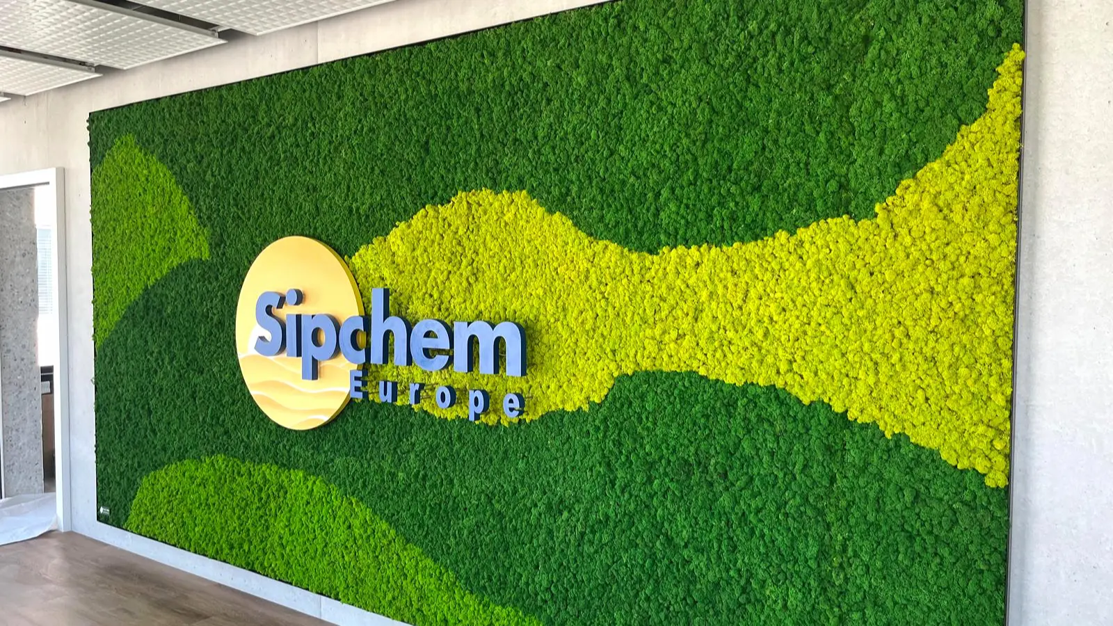 For its new site in LausanneSipchem Europe wanted to integrate a design and maintenance-free green solution into its reception area. It is in this context that Végétal Tendance designed and installed a stabilized lichen green wall, fully custom-made.