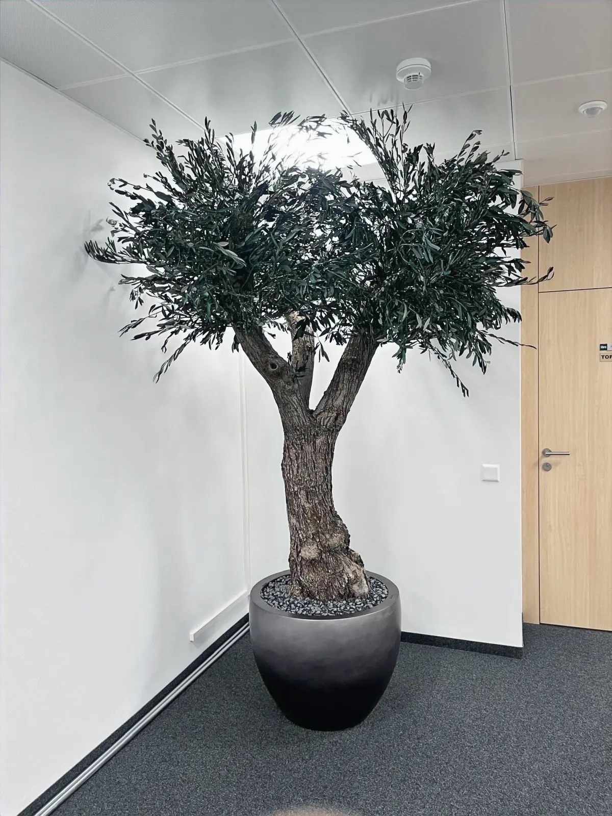 For this project in Orbe, we chose a stabilized olive tree with a height of 1.5 meters, ideal for workspaces. We took care to select a decorative pot that not only highlights the olive tree but also perfectly integrates into the interior design of the offices.