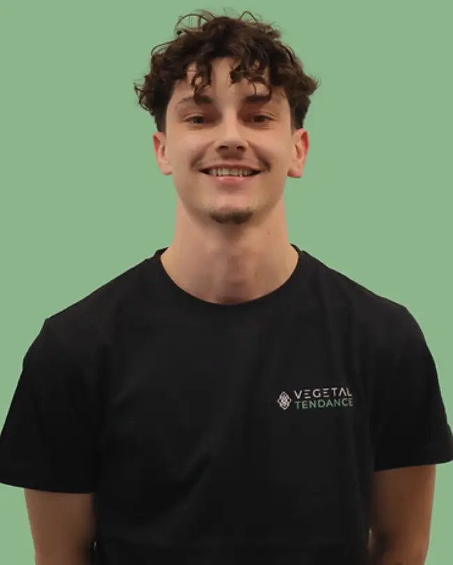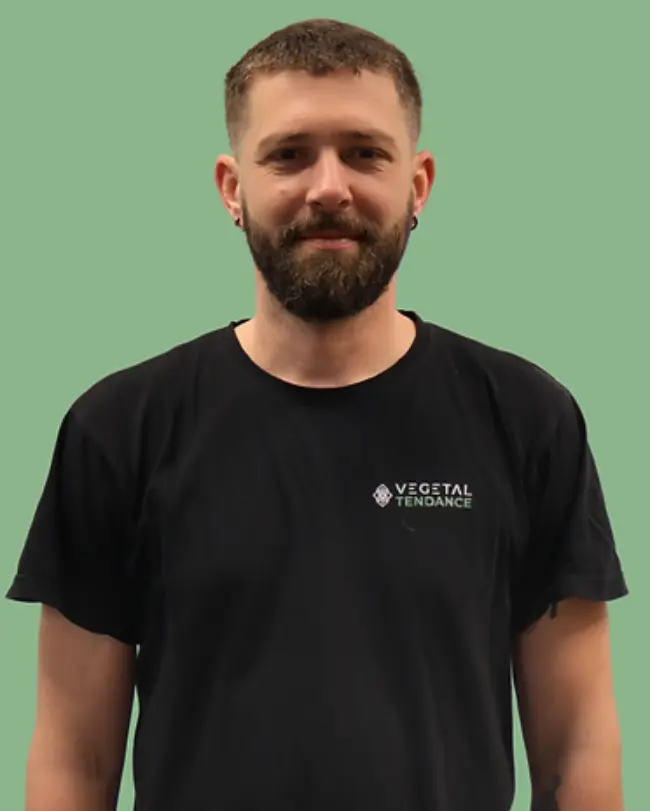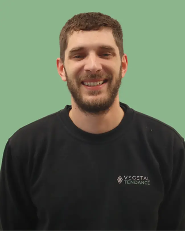 Arrivé chez Végétal Tendance il y a 3 ans, Flavien est désormais notre responsable atelier. Il excelle dans la transmission de savoir, l’organisation et la pédagogie. Toujours de bonne humeur et actif, il apporte une énergie positive à notre équipe. Si vous passez par l’atelier pendant le déjeuner, vous le trouverez soit en train de faire la sieste, soit en train de déguster de la tartiflette