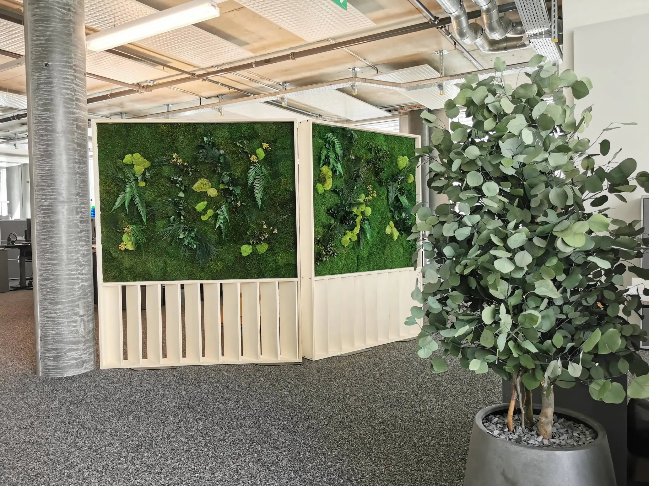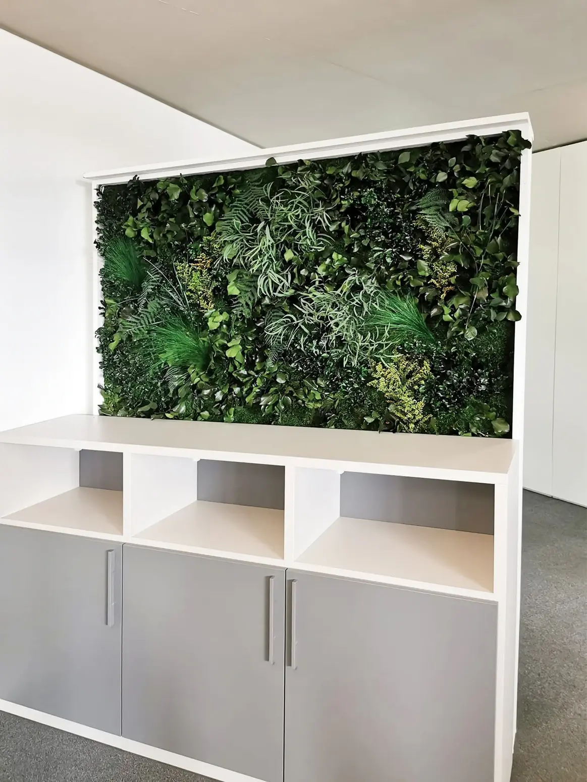 La séparation végétale est une solution si vous souhaitez créer un environnement de travail plus agréable pour les salariés. Nos séparations végétales sont facilement modulables et permettent d’aménager les espaces à votre convenance. Dans une salle d’attente ou près du bureau, la cloison végétale aide à gagner en intimité et permettent des échanges avec d’autres collaborateurs notamment dans les open-space. Nous avons plusieurs typologies de cloisons : la cloison naturelle vivante, la cloison stabilisée composée de végétaux et de bois et la cloison artificielle. Nous proposons également des séparations phoniques qui se fixent directement sur le bureau.