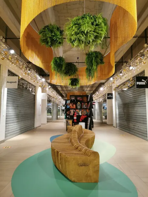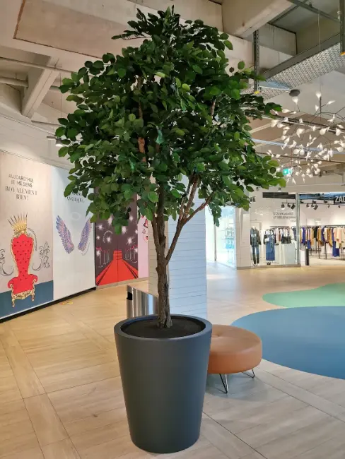 L’approche s’adapte aux contraintes d’un centre commercial : forte affluence, flux clients, zones techniques à camoufler. Nos végétaux sont pensés pour résister, être sécurisés (fixations robustes) et offrir un rendu élégant et harmonieux. Le choix de l’artificiel permet aussi une flexibilité décorative : les décors peuvent évoluer selon les saisons ou les campagnes commerciales.