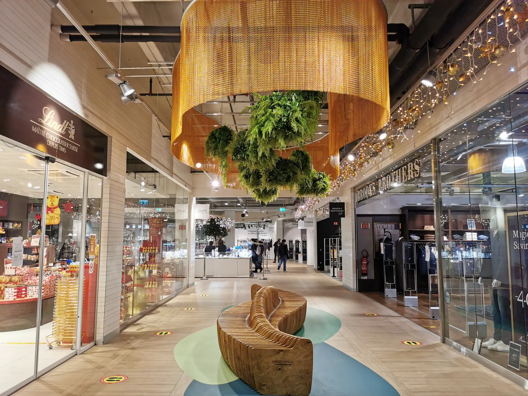 Nous avons déployé des suspentes végétales artificielles en plafond, associées à des guirlandes en lierre et des arbres décoratifs artificiels (dont des hêtres) pour créer des axes végétaux percutants au cœur des circulations. Ces installations structurent les zones de passage, habillent les espaces vides et apportent une touche de nature artificielle subtile et contemporaine.