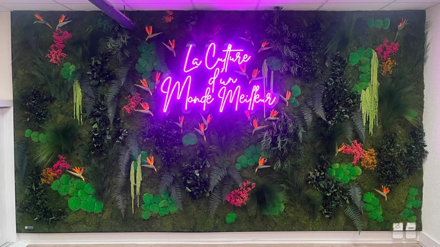 Travailler avec le cabinet BSM Casaling a été un vrai plaisir. Leur approche créative et leur sens du détail nous ont permis de sortir un projet à la hauteur de leurs attentes. En tant qu’architectes d’intérieur, ils ont parfaitement su intégrer ce mur végétal et ce logo néon dans l’environnement de leur client, créant ainsi un espace à la fois épuré, moderne et naturel. Le résultat final est un parfait exemple de l’équilibre entre nature et design contemporain, tout en mettant en avant l’identité visuelle du client.
