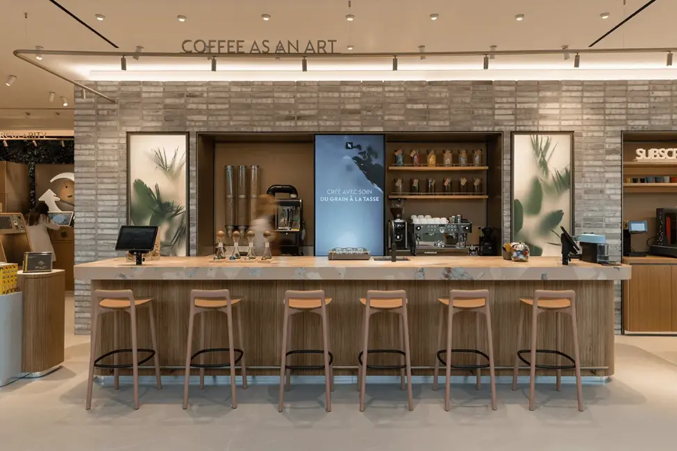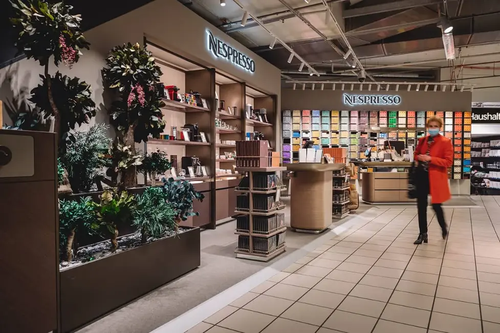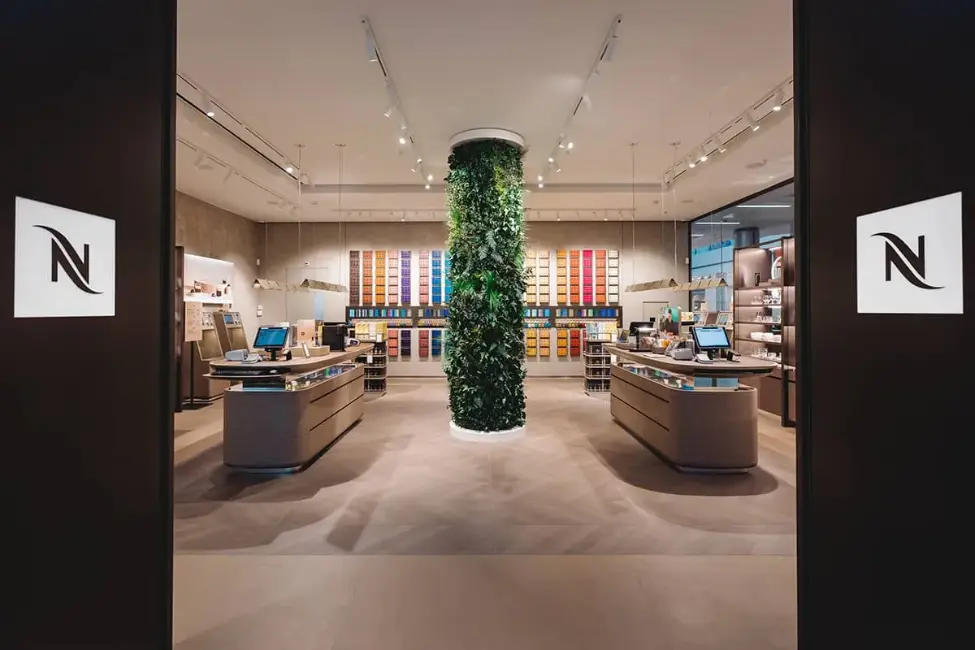 Dans toute la Suisse, Nespresso fait appel à Végétal Tendance pour végétaliser ses points de vente et traduire ses engagements environnementaux en langage spatial. Certifiée B-Corp, l’entreprise valorise le recyclage, la réduction des émissions et l’agriculture durable. Nos aménagements végétaux viennent incarner ces valeurs directement en boutique.