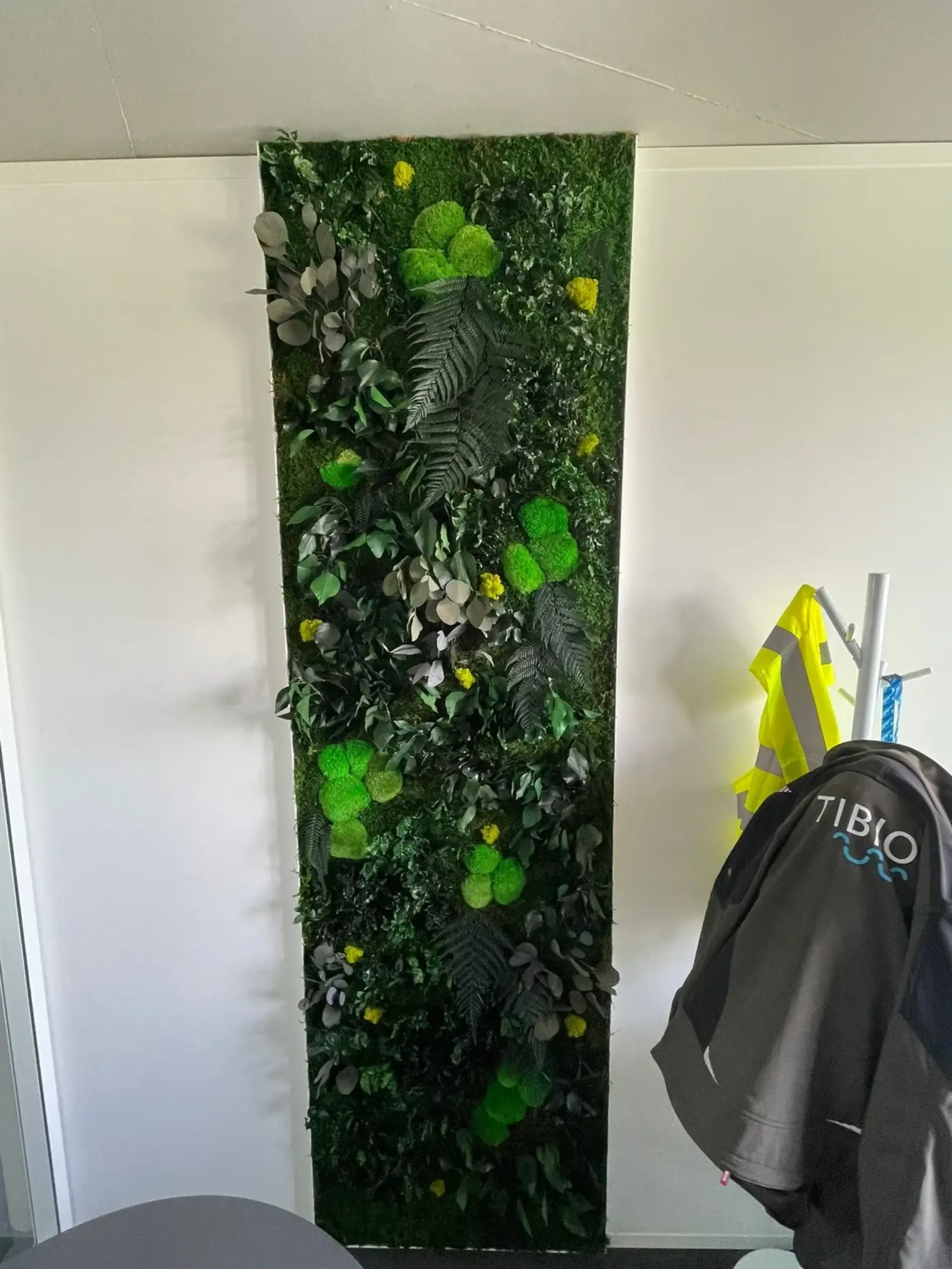 Au-delà de l’esthétique, ce mur contribue à l’amélioration acoustique du lieu : la densité de feuillages capte les nuisances sonores, ce qui rend l’environnement de travail plus serein. Les solutions stabilisées, sans arrosage ni entretien, garantissent une durabilité visuelle. Ce projet illustre notre capacité à allier design, technique et bien-être dans un contexte professionnel exigeant.