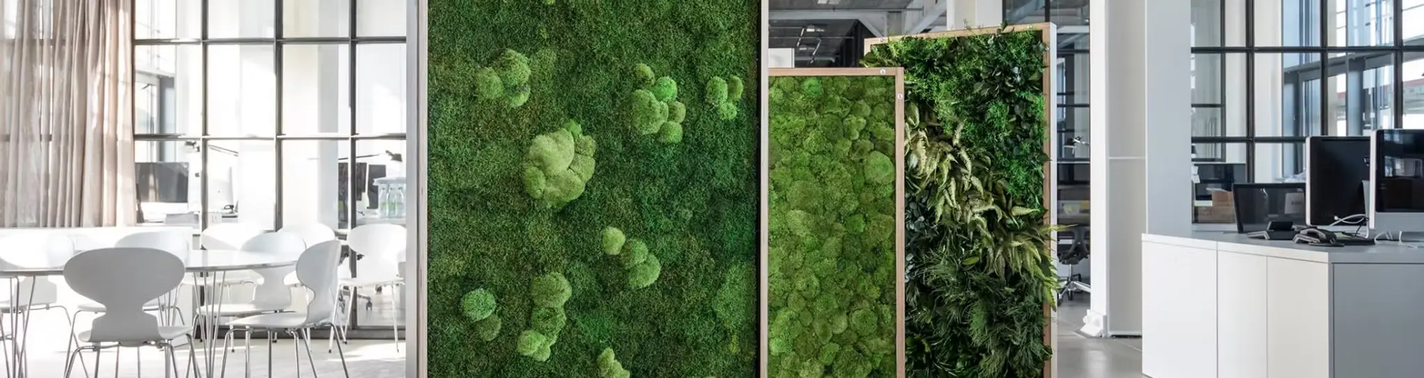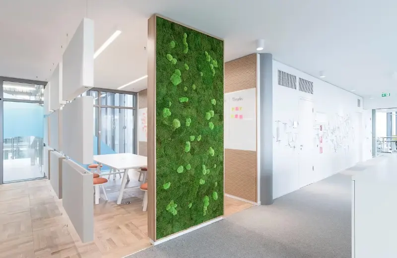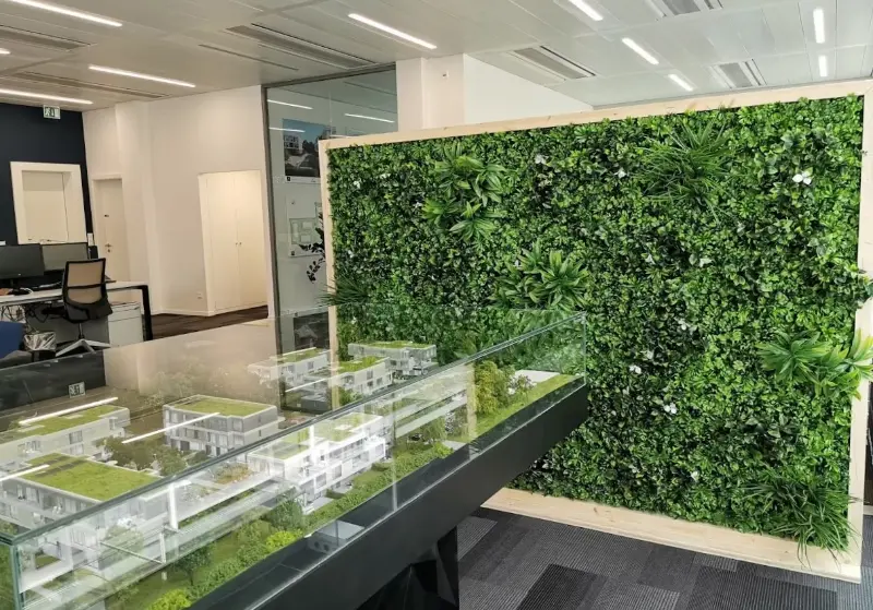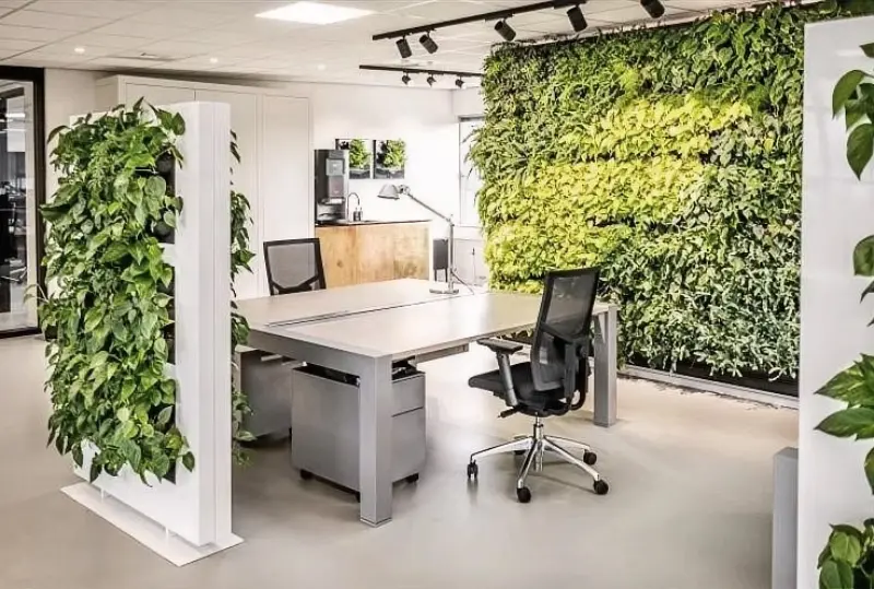 La séparation végétale vivante apporte non seulement une touche design et nature à votre espace de travail, mais aussi une atmosphère bien-être.